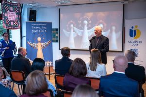 Директорка Українського дому пані Мирослава Керик у своєму вітальному слові згадала, що подібні ініціативи важливі для розвитку культурних та ділових зв’язків між нашими країнами, а також відзначила про внесок кожного присутнього у підтримку України.