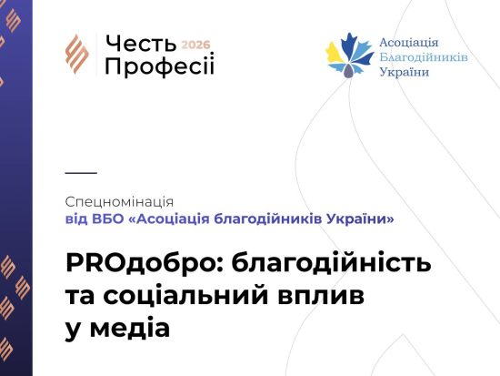 📌 Асоціація благодійників України стала партнером конкурсу «Честь Професії» у 2026 році та долучилася до заснування спеціальної номінації «PROдобро: благодійність та соціальний вплив у медіа».